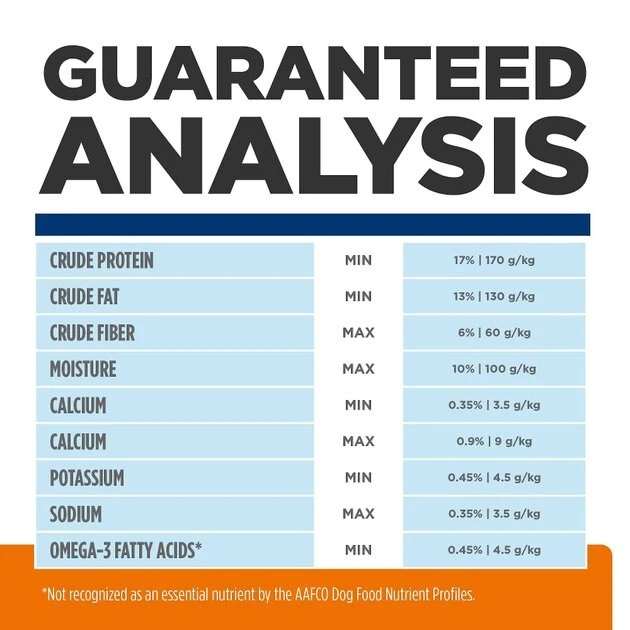 - Carefully balanced fat levels and low sodium content help maintain healthy weight and ideal body condition.