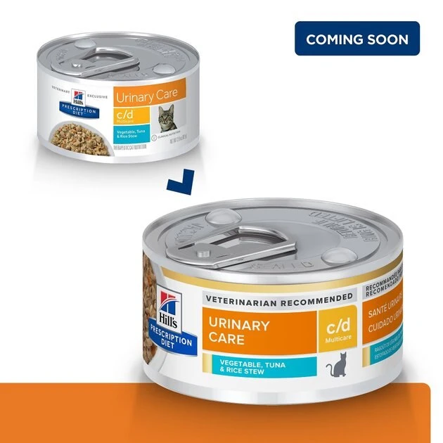A healthy bladder starts with the right balance of vital nutrients. Excess minerals can encourage the formation of crystals in the urine, which may lead to the creation of bladder stones. They can cause discomfort and lead to more serious problems that require the care of a veterinarian. Hill’s nutritionists and veterinarians developed Prescription Diet c/d Multicare, clinical nutrition specially formulated to support your cat’s urinary health. In fact, c/d Multicare is clinically tested nutrition to lower the recurrence of most common urinary signs by 89%. This irresistible food makes it easier for you to bond with your pet with gently cooked, bite-sized chunks of real tuna and natural ingredients with added vitamins and minerals.
