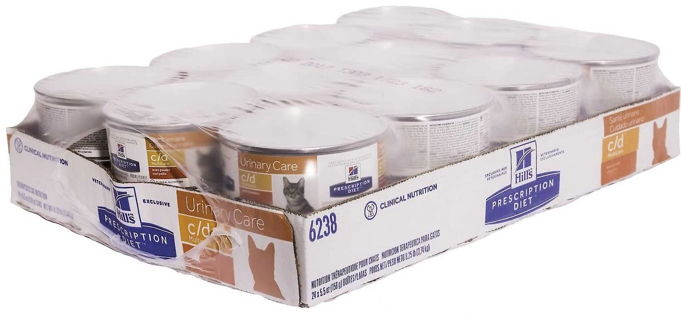 A healthy bladder starts with the right balance of vital nutrients. Our Hill’s Prescription Diet c/d Multicare Urinary Care with Chicken Dry + Canned Cat Food bundle provides you with both wet & dry food to suit your cat’s needs. Excess minerals can encourage the formation of crystals in the urine, which may lead to the creation of bladder stones. They can cause discomfort and lead to more serious problems that require the care of a veterinarian. This great tasting food was developed by nutritionists and veterinarians to help support your cat’s urinary tract health, and contains the right balance of vital nutrients to help improve most lower urinary tract conditions without the need for surgery. This formula can be fed long-term as a way to reduce the recurrence of urinary stones and is ideal for multiple cat households.