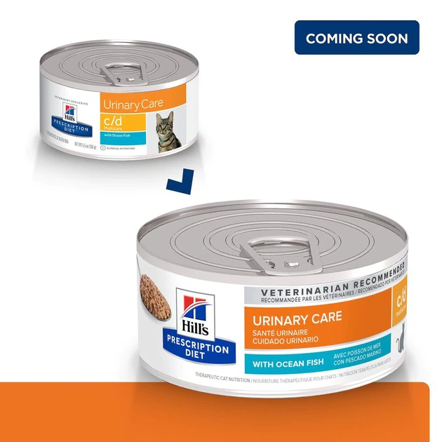 A healthy bladder starts with the right balance of vital nutrients. Excess minerals can encourage the formation of crystals in the urine, which may lead to the creation of bladder stones. They can cause discomfort and lead to more serious problems that require the care of a veterinarian. Great tasting Hill’s Prescription Diet c/d Multicare Urinary Care with Ocean Fish was developed by nutritionists and veterinarians to help support your cat’s urinary tract health. It contains the right balance of vital nutrients to help improve most lower urinary tract conditions without the need for surgery and can be fed long term as a way to reduce the recurrence of urinary stones.