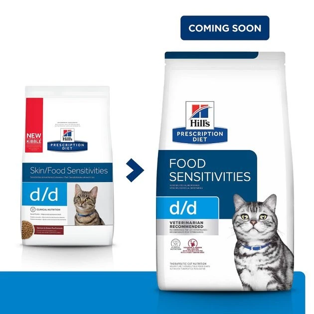 There can be a variety of reasons for your cat’s itchy, scratchy skin condition, including sensitivities to food. The good news is, most cats with these skin conditions can benefit from simply eating the right food. Hill’s nutritionists and veterinarians developed Prescription Diet d/d clinical nutrition especially formulated to support your cat’s skin and food sensitivities. In fact, d/d is clinically proven nutrition to help avoid reactions to food.