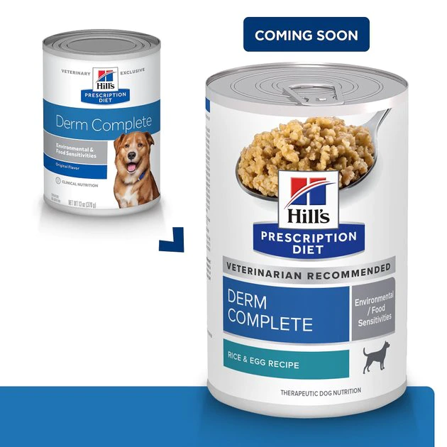 Hill’s Prescription Diet Derm Complete Environmental, Skin & Food Sensitivities Wet Dog Food is clinically formulated to help manage environmental and food sensitivities. If your furry friend suffers from itching, then this prescription diet just may be the right choice for her! As with any prescription food, please consult your vet for more information and guidance on how this Hill’s Prescription Diet food can help her lead a happy and active life.