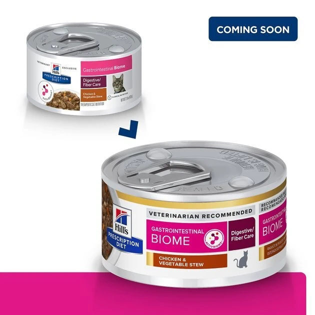 When your cat’s stomach isn’t happy, everybody knows it. Now you can help reduce stomach upset and help take the stink out of your litter box with a tasty stew that will have your kitty meowing for more. GI Biome Digestive Care wet cat food was formulated by Hill’s team of nutritionists and veterinarians using a different approach to digestive care. Hill’s ActivBiome Technology helps the bacteria in your feline’s stomach work to break down his breakfast, dinner and everything in-between. This blend of active fibers helps food move through the body naturally—and regularly—by encouraging the release of good bacteria. So, with the help of your veterinarian and a savory stew, you can help support your BFF’s overall digestive health.