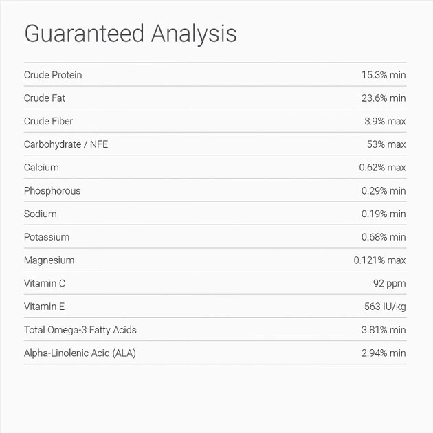 | Alpha-Linolenic Acid (ALA) | 2.94% min |