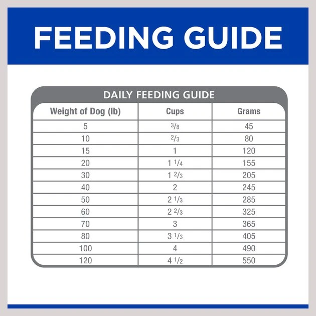 Adjust feeding amounts as necessary to maintain optimal weight. If you are unsure, ask your veterinarian. For best results & safety practices: Gradually transition to your pet’s new food over a 7 day period. Exclusively feed the recommended Prescription Diet dry food, canned food & treats. Keep fresh water available at all times. Have your veterinarian monitor your pet’s condition.