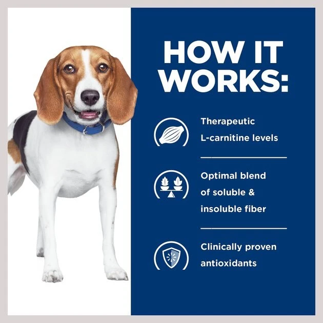 Almost 50% of the pet population is overweight. Even a little extra weight can lead to serious health problems. Extra weight can reduce play time, impact mobility and affect the general health of your dog. Factors contributing to weight gain include age, lack of exercise and overfeeding. Many commercial pet foods are loaded with salt and fat, which improve the taste but also have dramatic effects on your dog’s weight and overall health. Along with frequent physical exercise, choosing the right food plays a very important role in helping dogs reach their proper weight. At Hill’s, nutritionists and veterinarians have developed clinical nutrition especially formulated to reduce dogs’ body fat by 22% in two months, while keeping him or her satisfied.