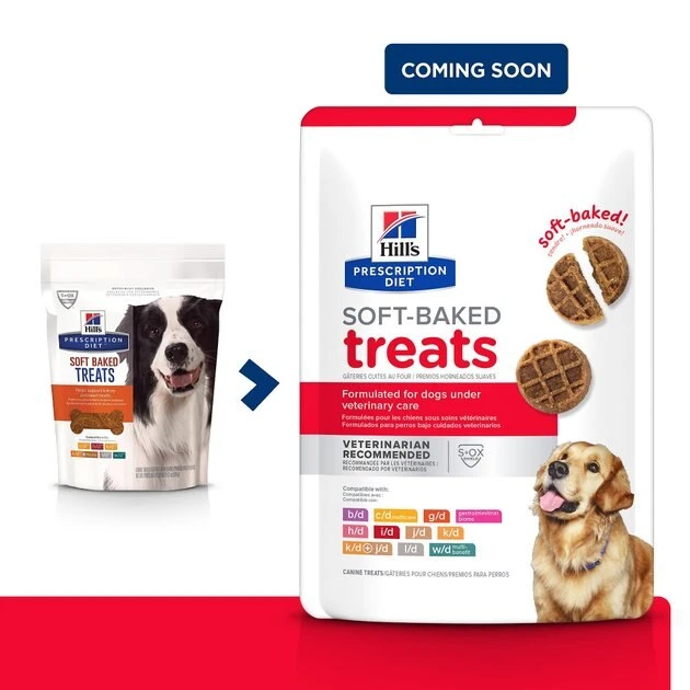 Every dog deserves a treat, and the Prescription Diet Soft Baked Treats Dog Treats helps to make that possible without compromising their diet. A delicious, soft baked treat that’s easy for older dogs to enjoy, it’s chockfull of goodness to support kidney, heart and joint health. And because some dogs have special nutritional needs, the tasty recipe will not compromise the effectiveness of certain Prescription Diet® foods, including Prescription Diet b/d Canine, c/d Canine, g/d Canine, h/d Canine, w/d and k/d Canine.