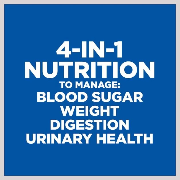 Some dogs are more prone to weight gain than others, but even a little extra weight can impact your dog’s quality of life. Hill’s Prescription Diet w/d Multi-Benefit Digestive/Weight/Glucose/Urinary Management is clinically tested nutrition specially formulated to support your dog’s weight management. This irresistible food has gently cooked, bite-sized chunks of real chicken and natural ingredients with added vitamins and minerals. Using therapeutic L-carnitine levels and an optimal blend of soluble and insoluble fiber, this delicious formula helps dogs with weight, digestive and glucose management.