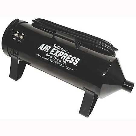 Step into the ring in style with the Sullivan Supply Air Express III Farm Animal Tool! The aerodynamic front end increases air velocity for more air power, and the funnel design provides less air restriction. It features two high-efficiency motors and a heat booster to increase air temperature to dry your animals faster. Cartridge filter slides into the back for better protection. Complete set includes 15′ hose, filter, hose clamp and 1-year warranty.
